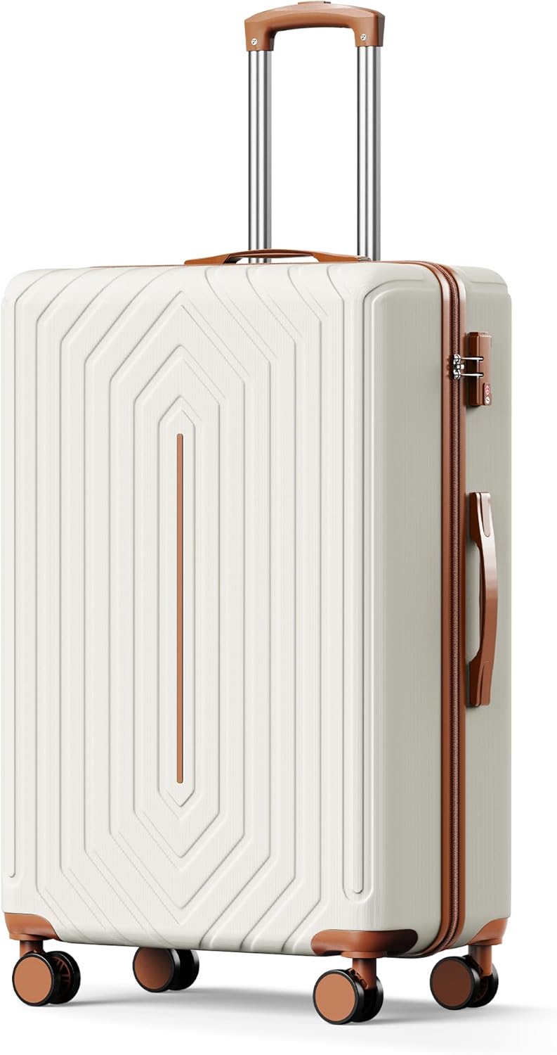 28 inch Luggage Hardside Lightweight Suitcase with Spinner Wheels for Travel Business, WHite&Brown