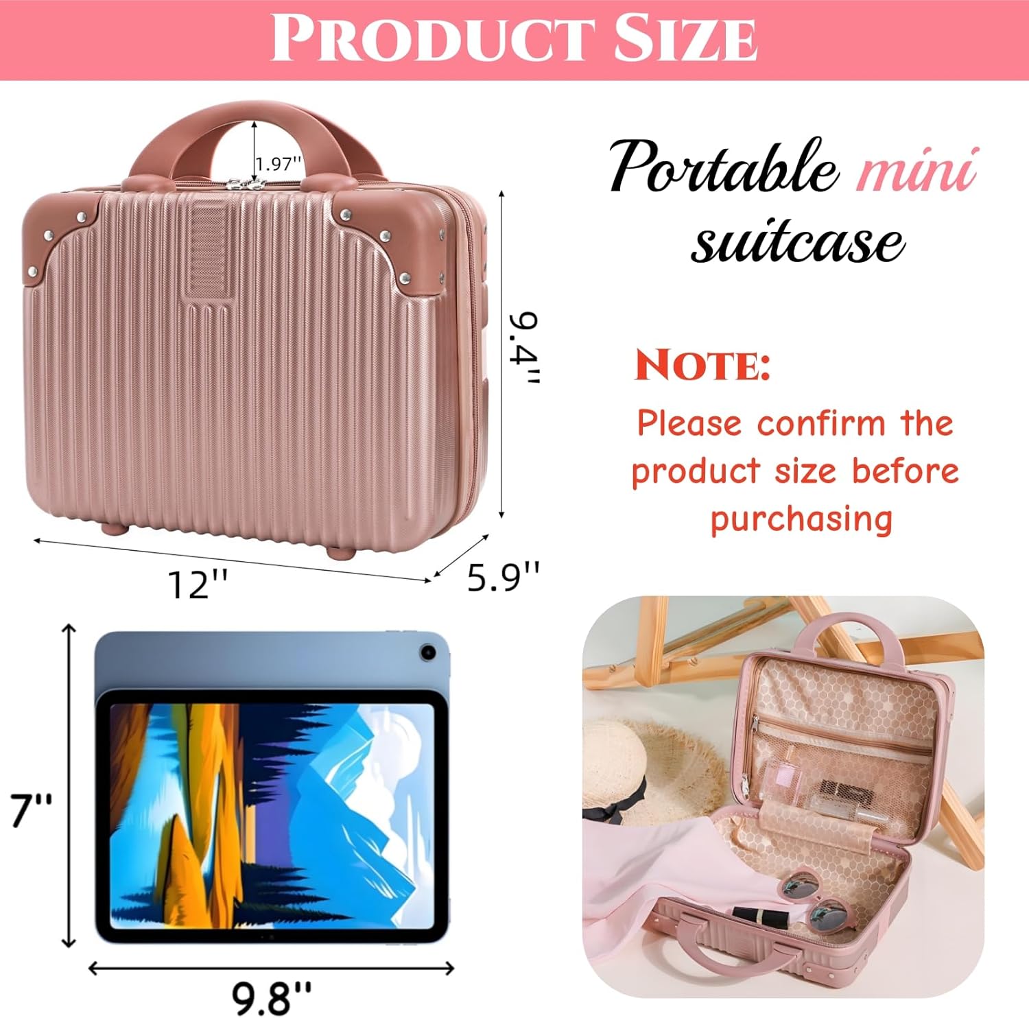 - Large Capacity: The makeup travel case measures 12”L x 5.9”W x 9.4’H, viding enough space to store your makeups, socks, toiletries, shaving kits, jewelry, hats, and power bank, etc.