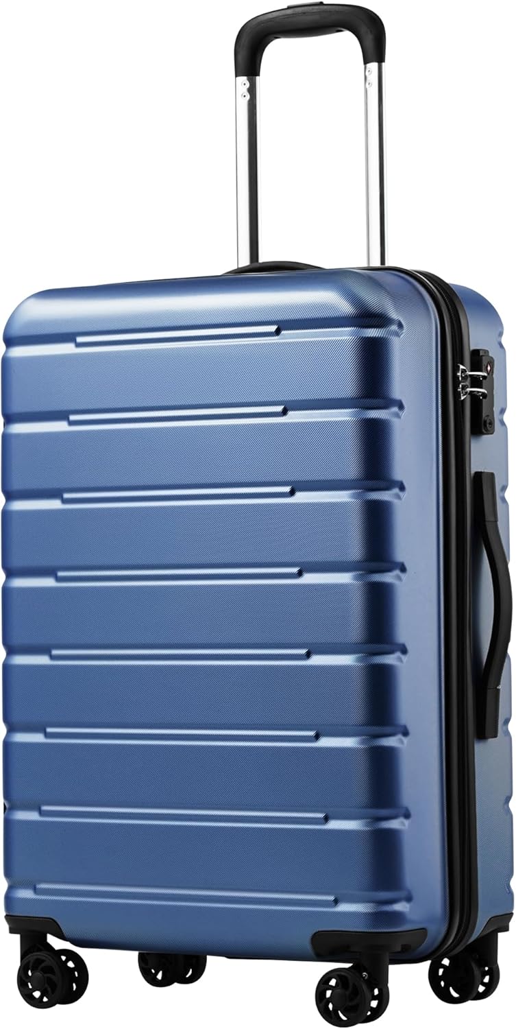- Effortlessly embark on your journeys with the ergonomic telescopic handle and four smooth-gliding spinner wheels. Maneuvering the luggage is a breeze. Crafted from durable polycarbonate and ABS materials, this luggage is both robust and lightweight, featuring convenient top and side handles.